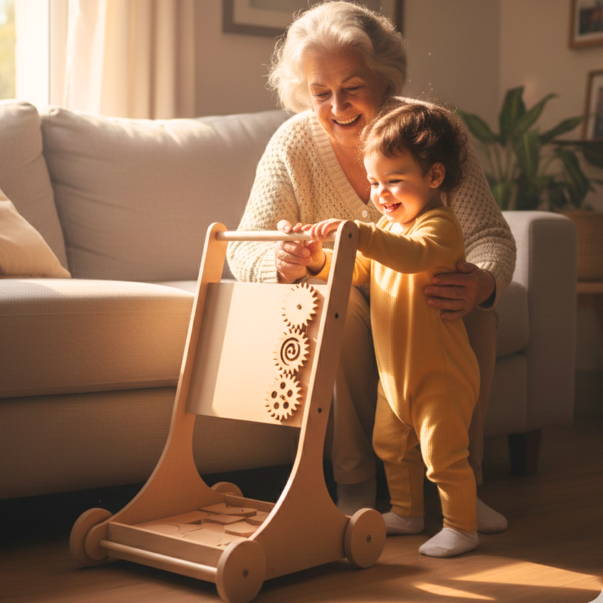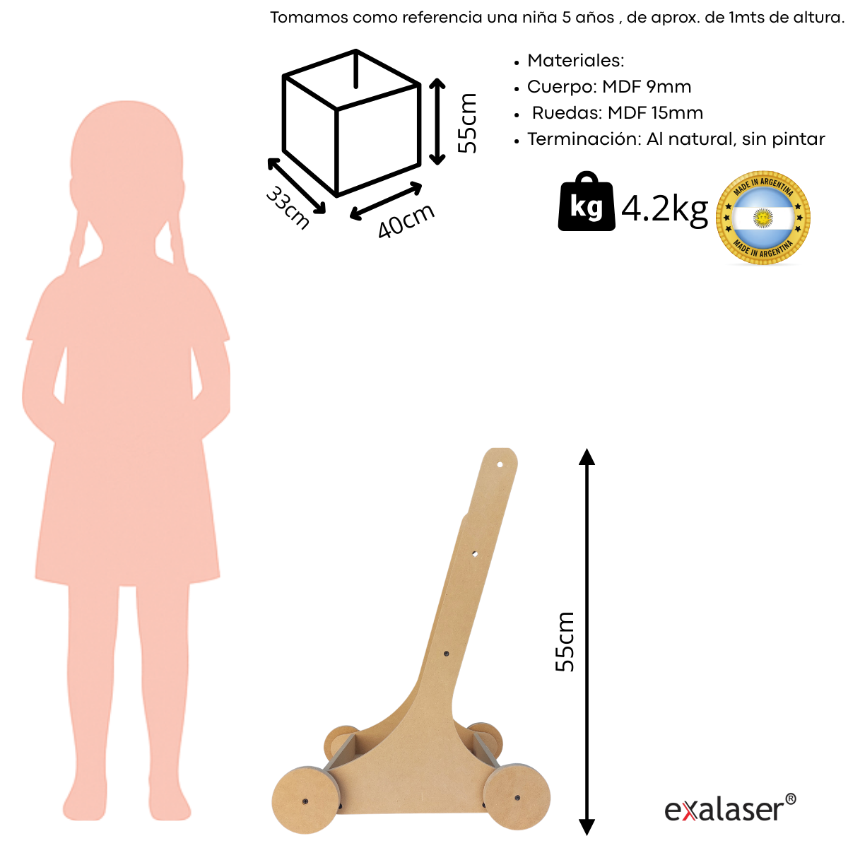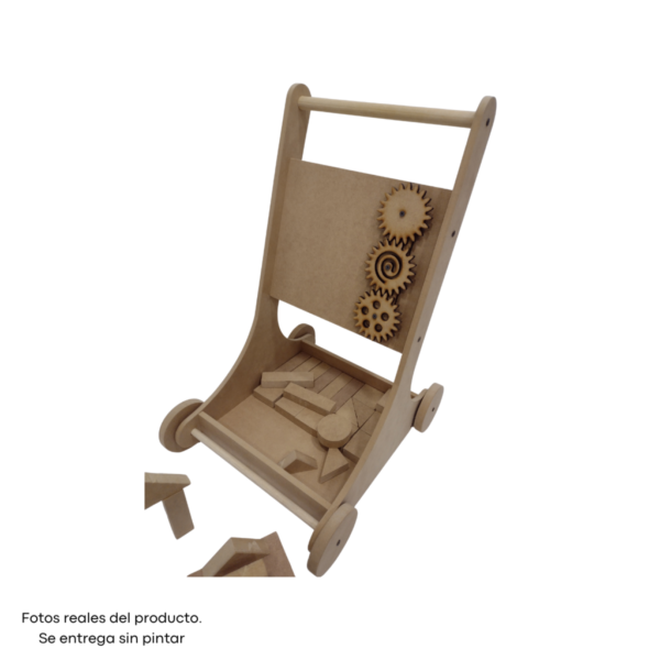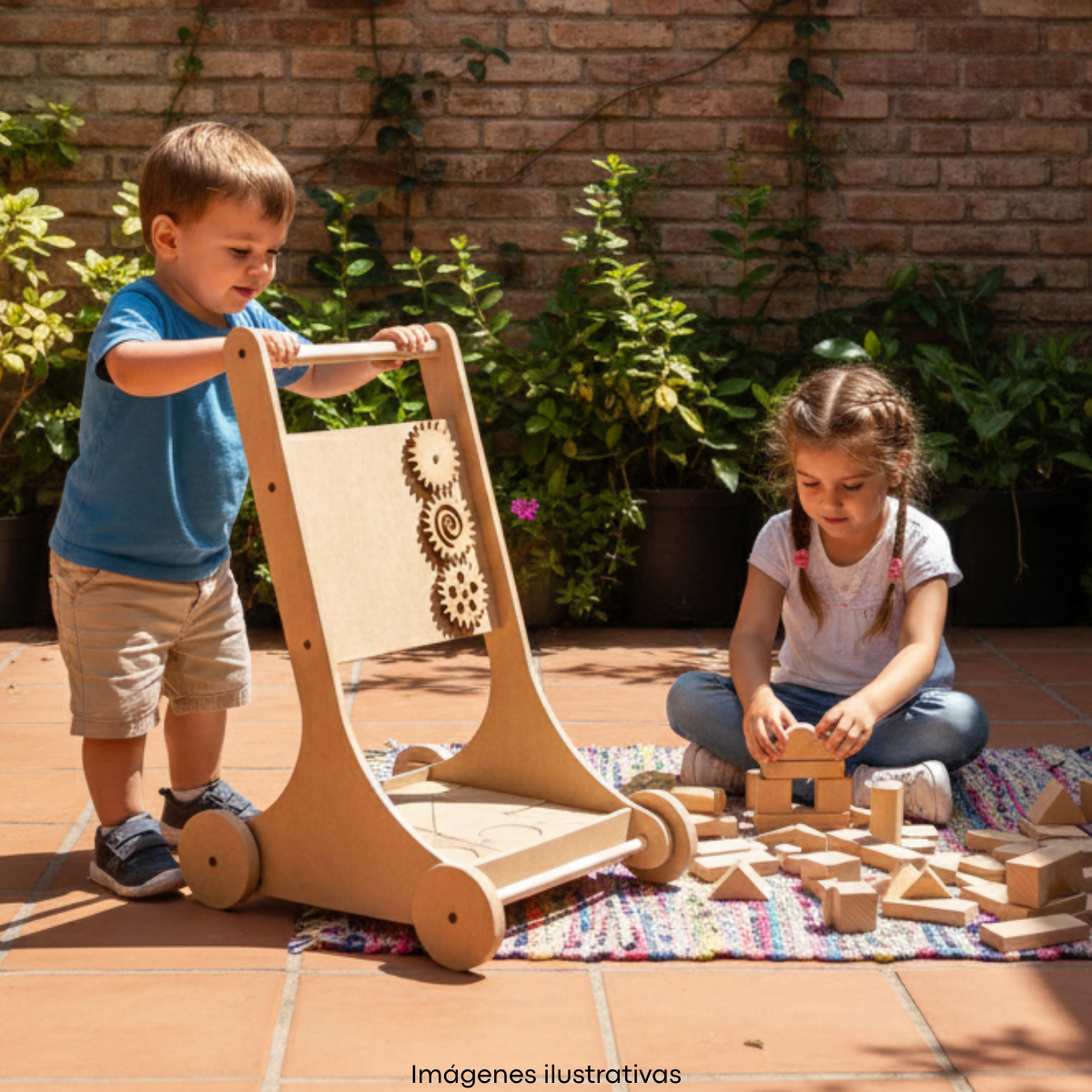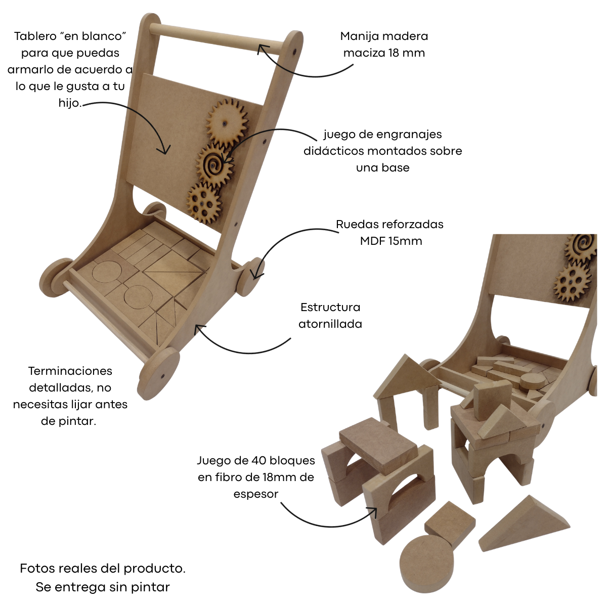 Caminador / Andador Valentino con 40 bloques. Tablero con engranajes giratorios y espacio libre para personalizar. Medidas 40x33x55cm