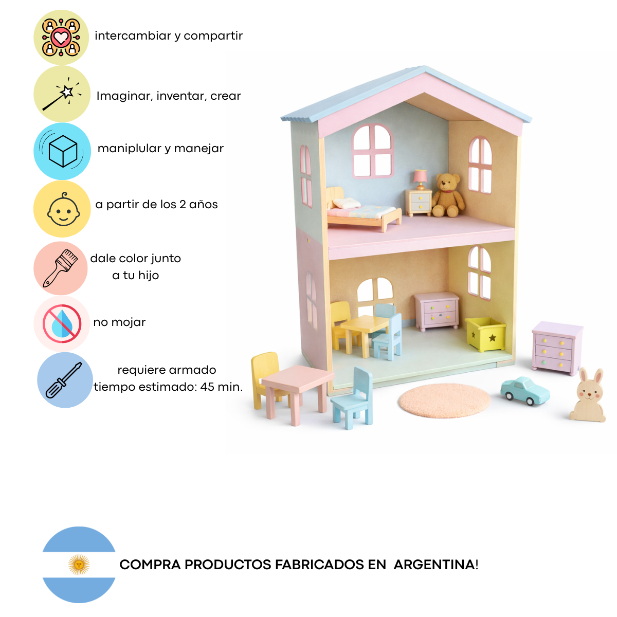 Esta casa de muñecas de madera no es solo un juguete, es el escenario donde nacen las historias más lindas de la infancia.