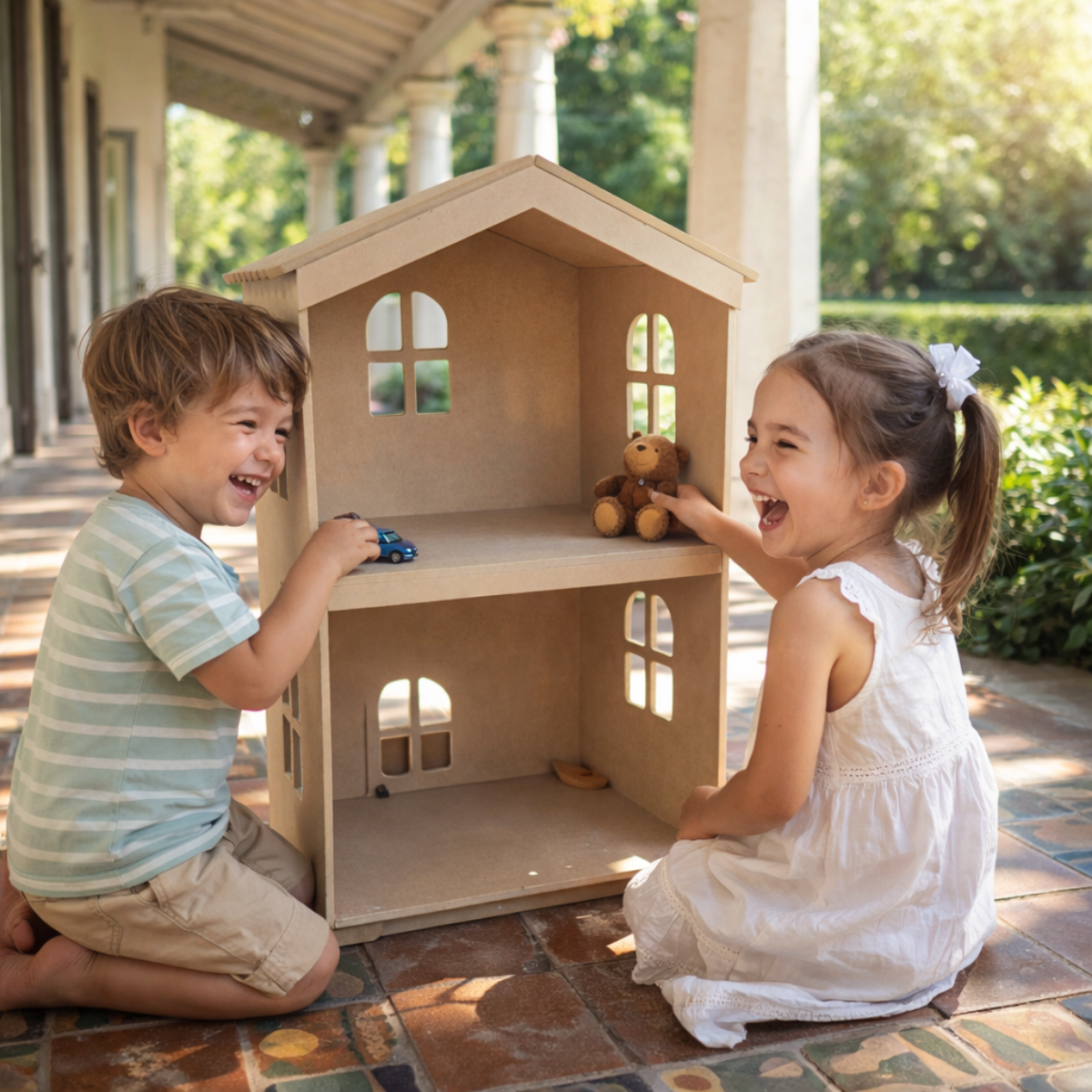 Casa De Muñecas. Casita Infantil Madera. Casita Muñecas 9mm Natural