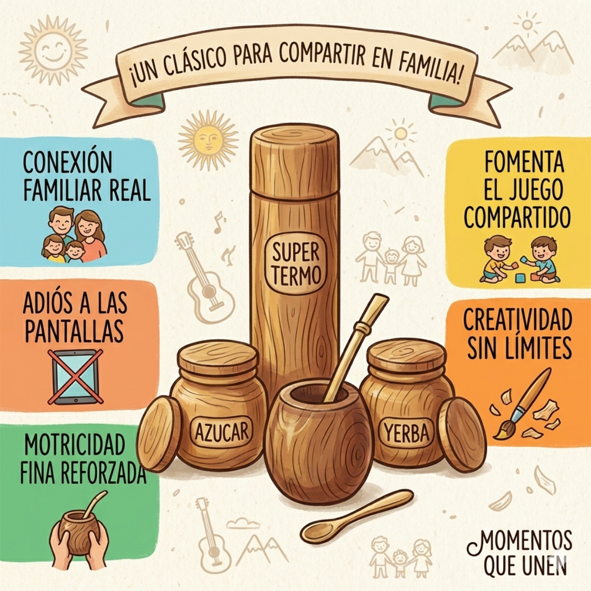 Es la excusa perfecta para que el niño invite a mamá, papá o a sus abuelos a «tomar un mate», fomentando la paciencia, el respeto de los turnos y la calidez del diálogo intergeneracional.