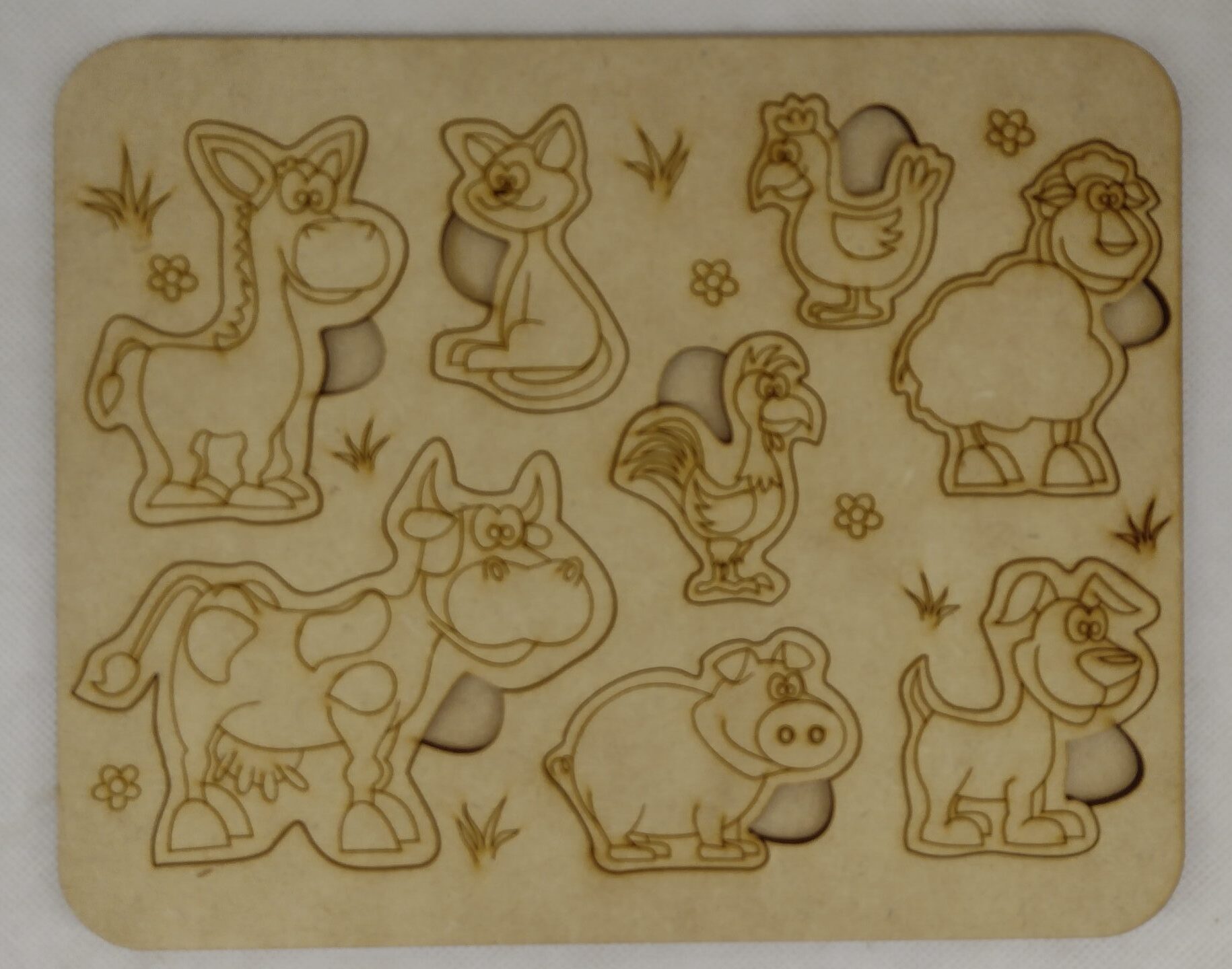 Fabricado en fibrofacil de 3mm de espesor, frente y base